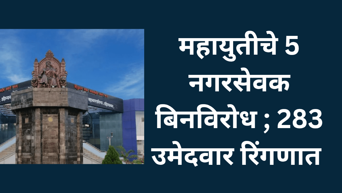 Homeअहिल्यानगर महापालिका निवडणूकमहायुतीचे 5 नगरसेवक बिनविरोध ; 283 उमेदवार रिंगणात