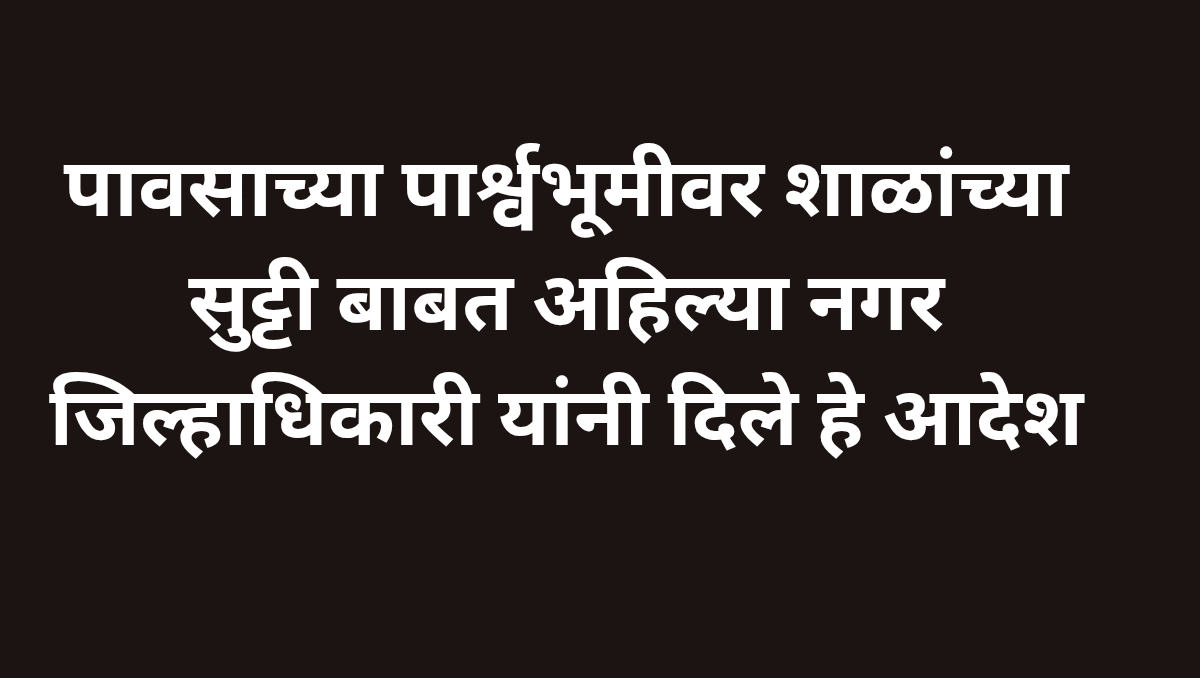 जिल्ह्यातील पाथर्डी, शेवगाव व जामखेड येथे सुरू असलेल्या मुसळधार पावसाच्या पार्श्वभूमीवर स्थानिक परिस्थितीचा आढावा घेऊन शाळांना सुट्टी देण्याचा अधिकार ग्रामस्तरावरील शालेय व्यवस्थापन समित्यांना प्रदान करण्यात आला आहे.