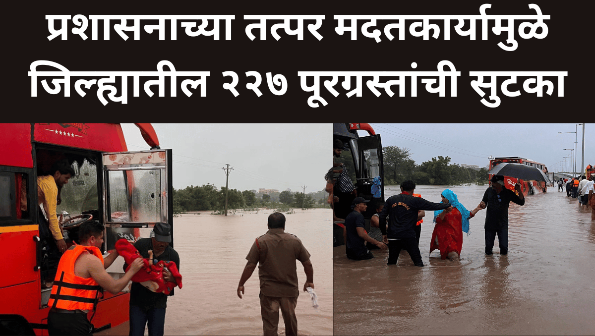 प्रशासनाच्या तत्पर मदतकार्यामुळे जिल्ह्यातील २२७ पूरग्रस्तांची सुटका